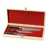 Blackfriday Classic 3 Piece Starter Cutlery SetDMS300 Bamboo Presentation Box No Longer Available 3 Piece starter set includes: -3.5'' Paring knife. -6'' Utility knife. -8'' Chef's knife. Features: -3 Piece starter set. -Classic collection. -VG-10 ''super steel'' cutting edge. -16 Layers of SUS410 stainless steel is clad on each side of the VG-10 super steel creating 33 layer damascus style finish. -Pakkawood ebony black ''D'' shaped comfort handle. -Blade is sharper and stays sharper longer than the competition. -Extremely sharp stainless steel. Specifications: -Cleaning and care: Dishwasher safe but hand washing is recommended. -Shun provides limited lifetime warranty.Cheap Classic 3 Piece Starter Cutlery Set ![]() | |